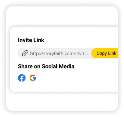 Once you’re connected to your community, leverage StoryFaith to invite others to live out faith with you. Simply use your personalized share link either on your StoryFaith profile or on the Communities profile to share with others what the experience will be like.